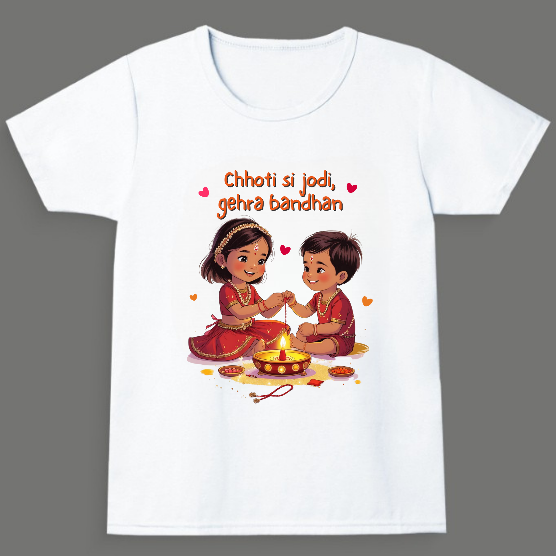 Tiny feet, endless memories. Celebrate the deep love between your little ones with this adorable Rakhi tee that says it all—without saying much.