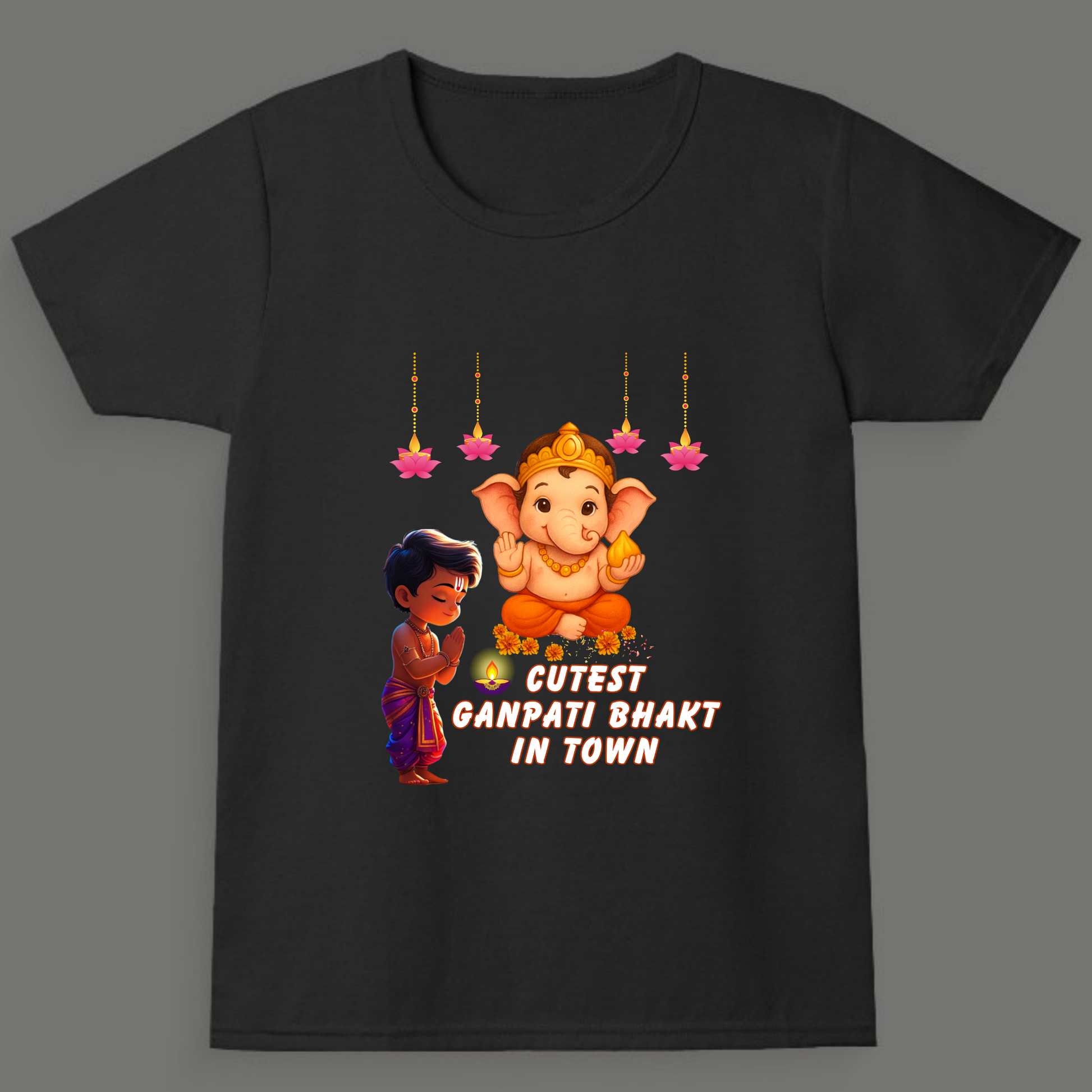 Cutest Ganpati Bhakt in Town | Boys Crew Neck T-Shirt