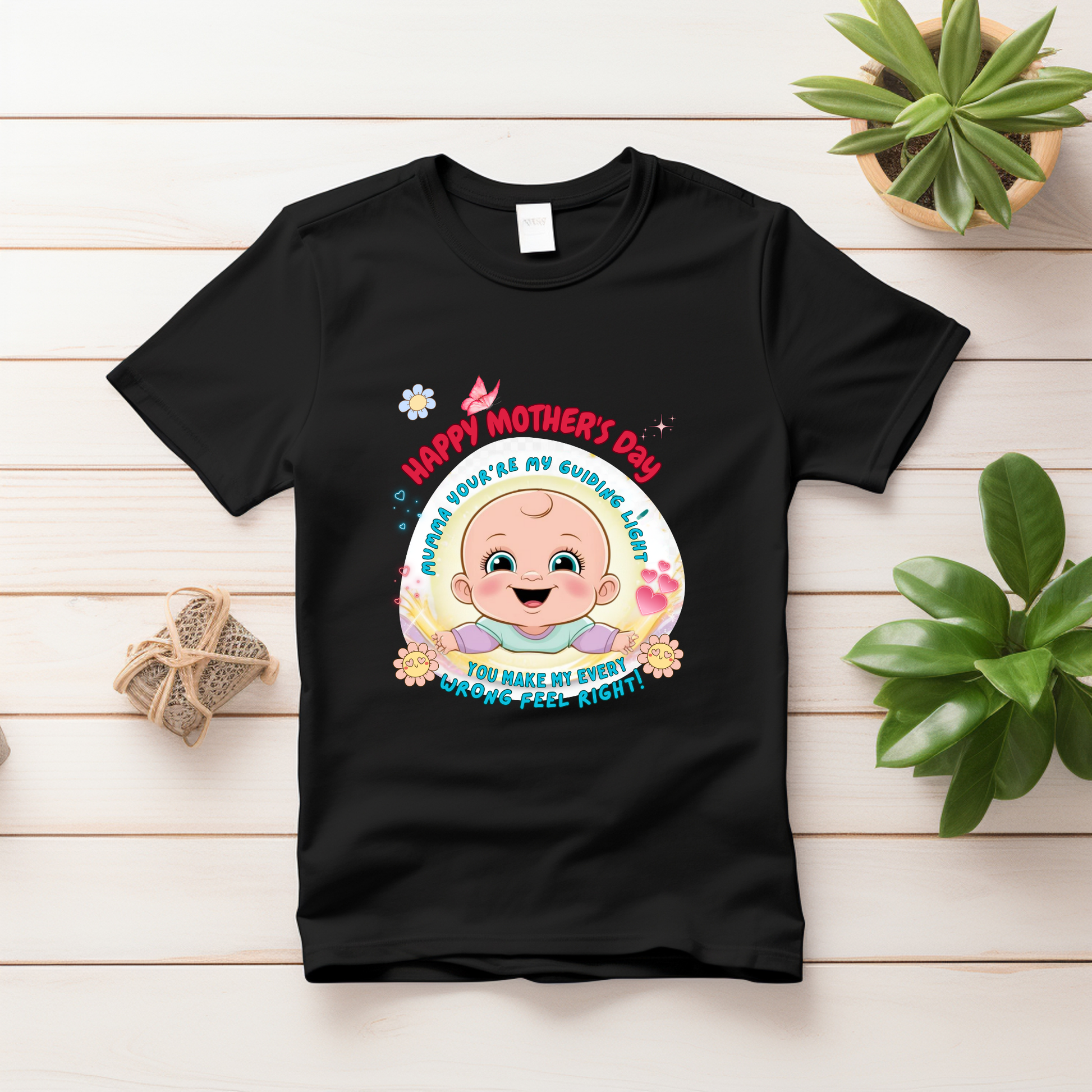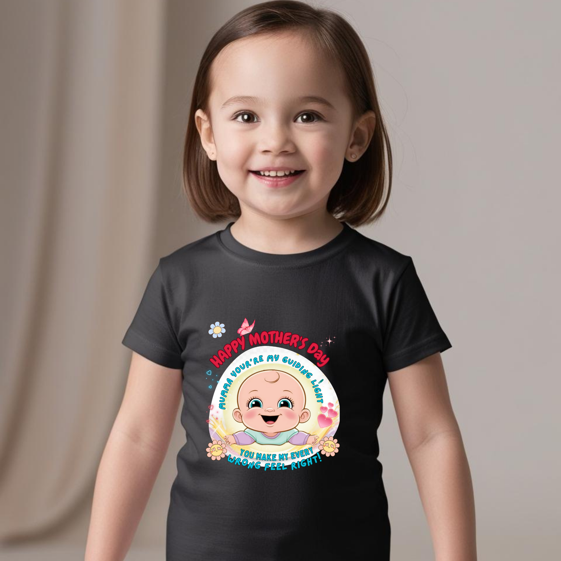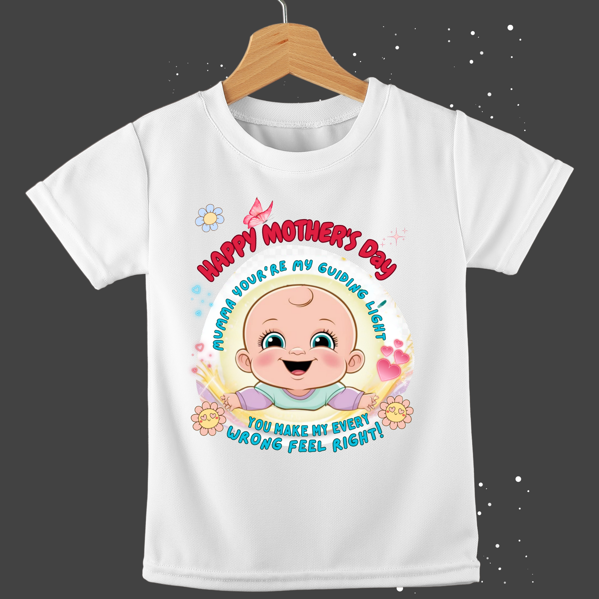 Let your little one light up Mumma’s day with this adorable romper featuring the sweet line: “Mumma, you are my guiding light, you make every wrong feel right.”