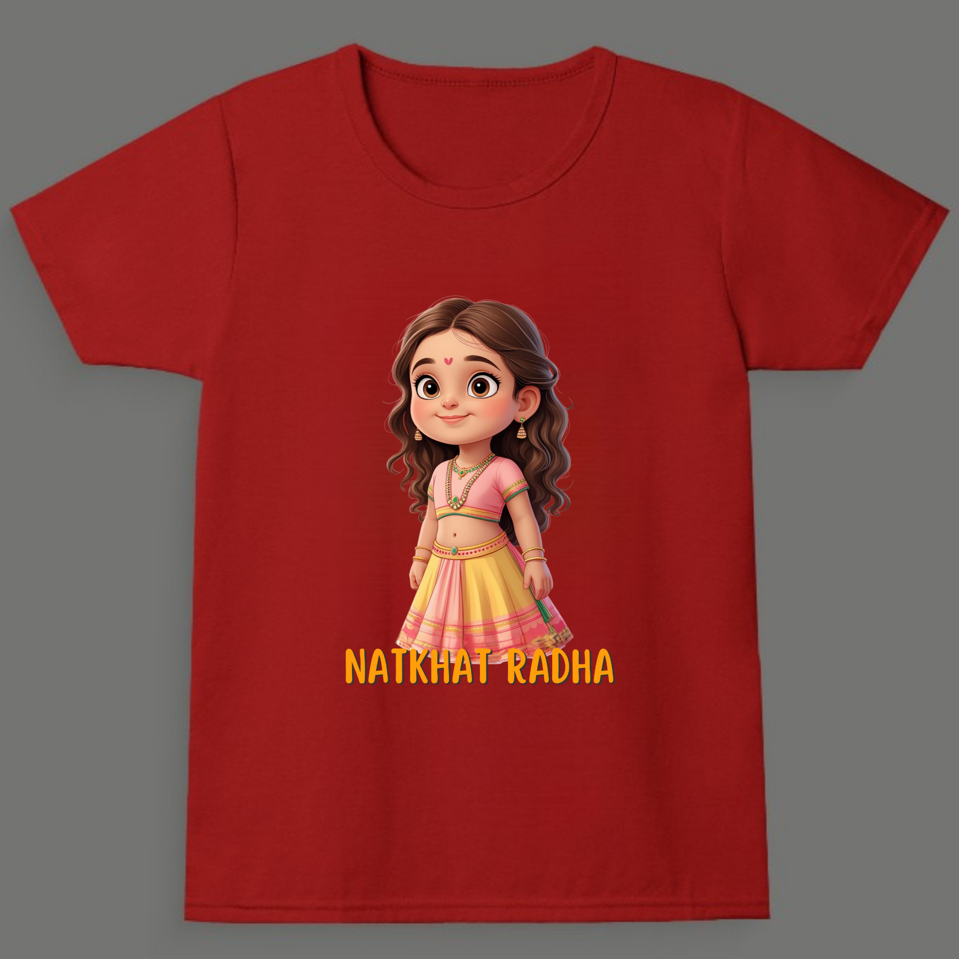 Celebrate the playful spirit of your little girl with this “Natkhat Radha” tee! A fun and festive pick for Janmashtami celebrations, photoshoots, or family get-togethers.