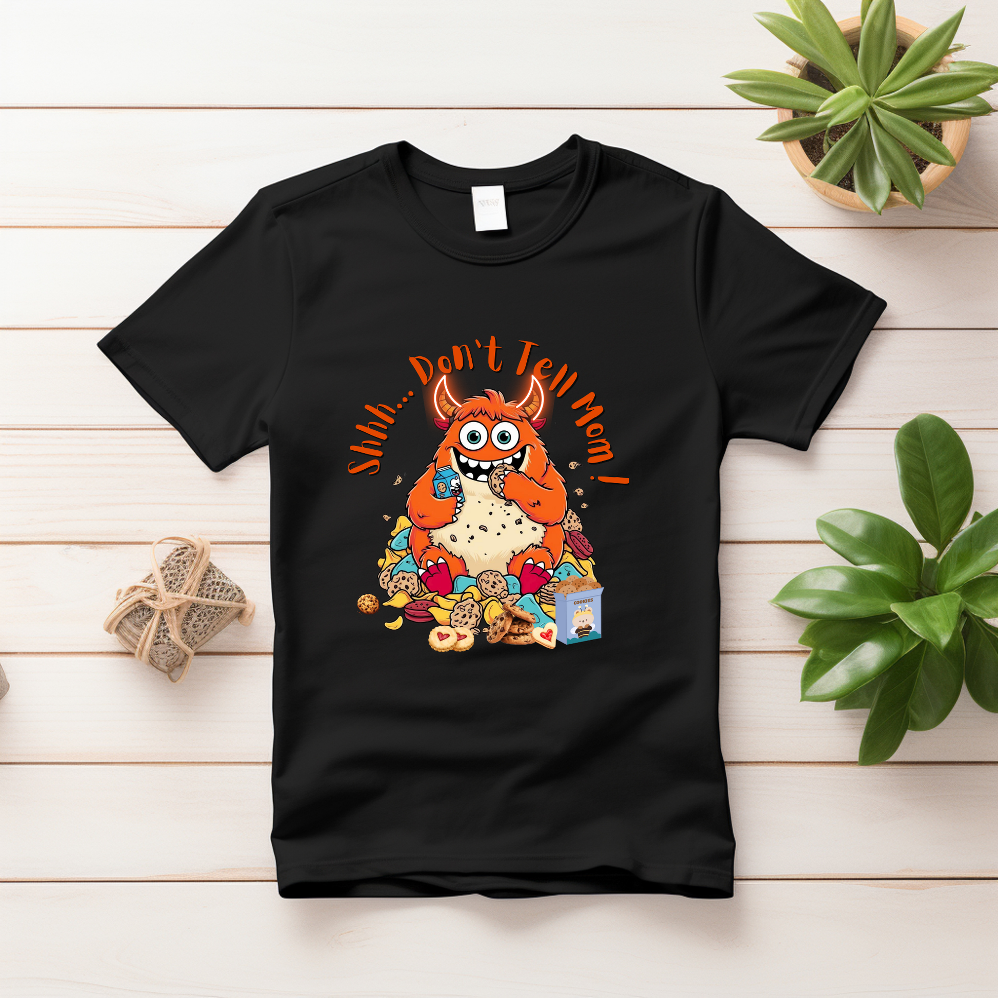 A playful design that’s as cheeky as your little one! Featuring a cookie-munching monster and the phrase "Shhh... Don’t Tell Mom", this tee is perfect for those who love fun, laughter, and a little bit of mischief.